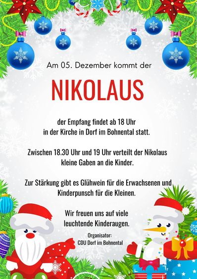 In diesem Jahr wird der Nikolaus die Kinder in Neipel wieder besuchen. Die Veranstaltung findet am Freitag, den 05.12. um